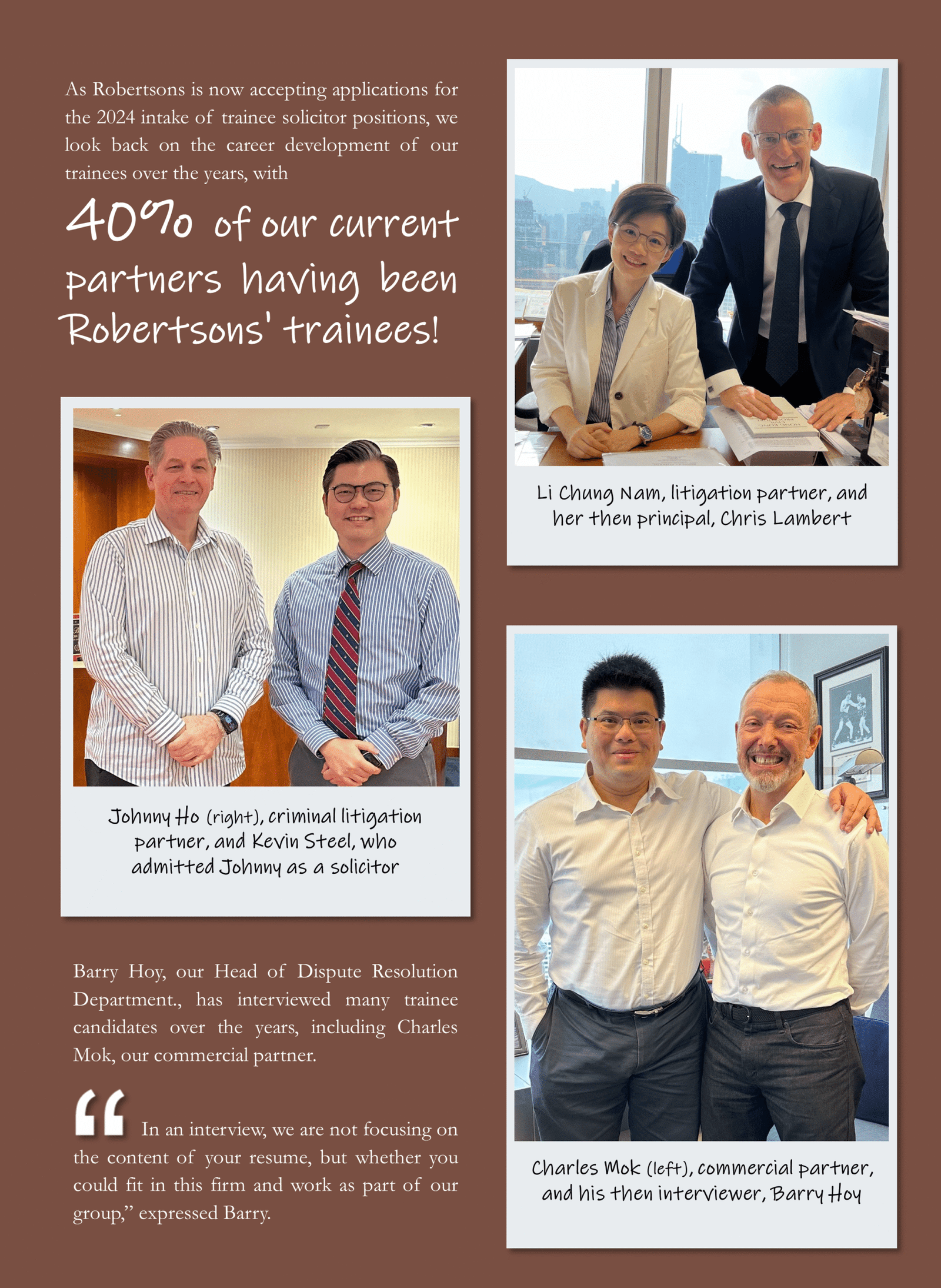 Featured story for trainee solicitor recruitment: 40% of our current partners have been Robertsons’ trainees!