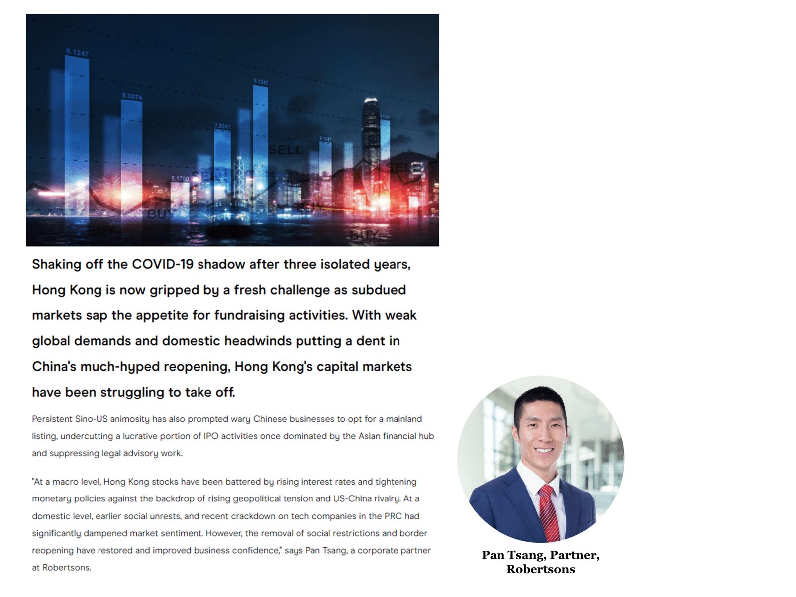Pan Tsang shared his insights on Hong Kong’s capital markets and IPO outlook with Asian Legal Business
