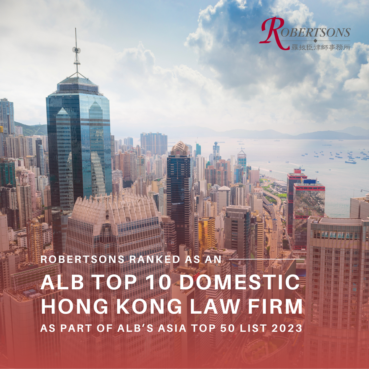 Robertsons ranked as an ALB Top 10 Domestic Hong Kong Law Firm 2023