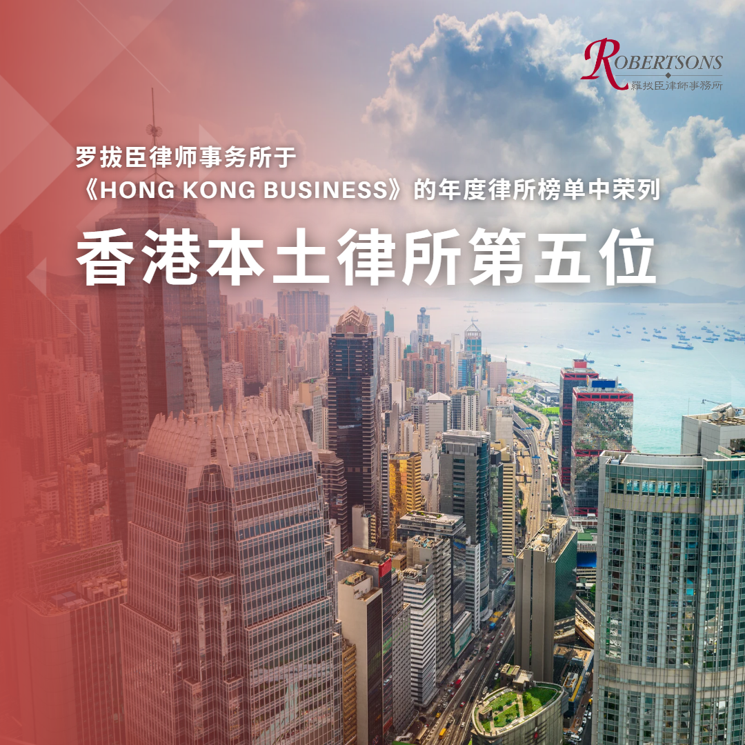 本所于《Hong Kong Business》的年度律所榜单中荣列香港本土律所第五位