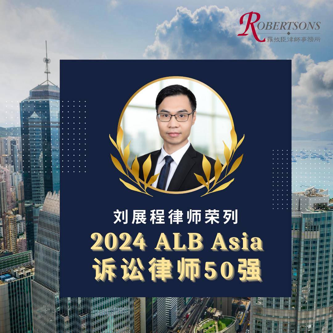 刘展程律师荣列「2024 ALB Asia 诉讼律师50强」