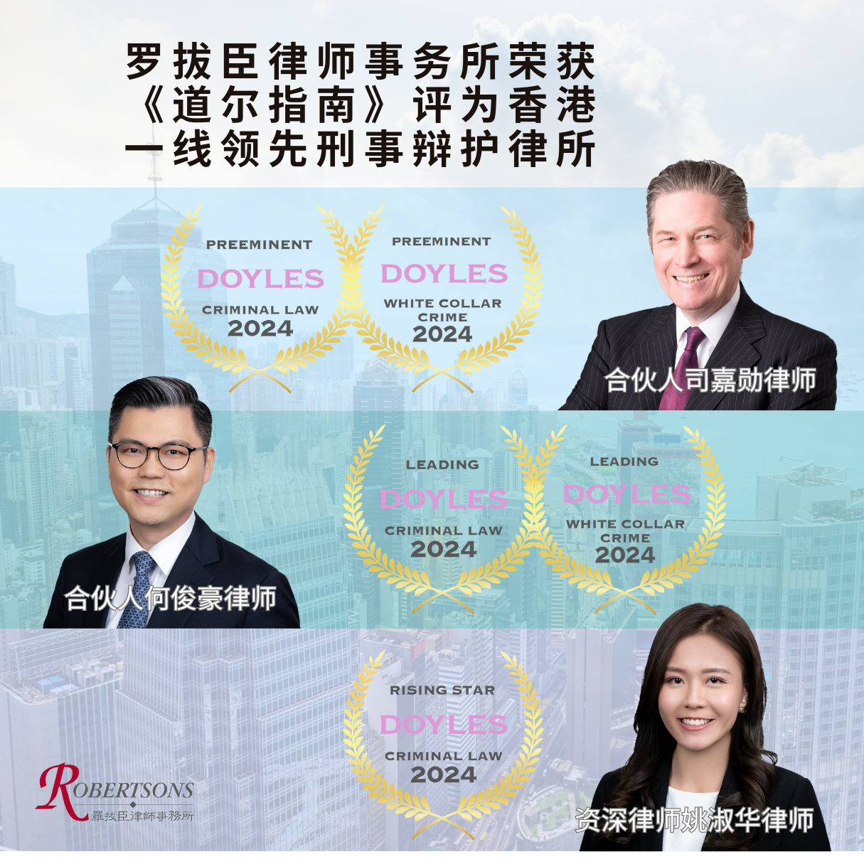 本所荣获《道尔指南》评为香港一线领先刑事辩护律所