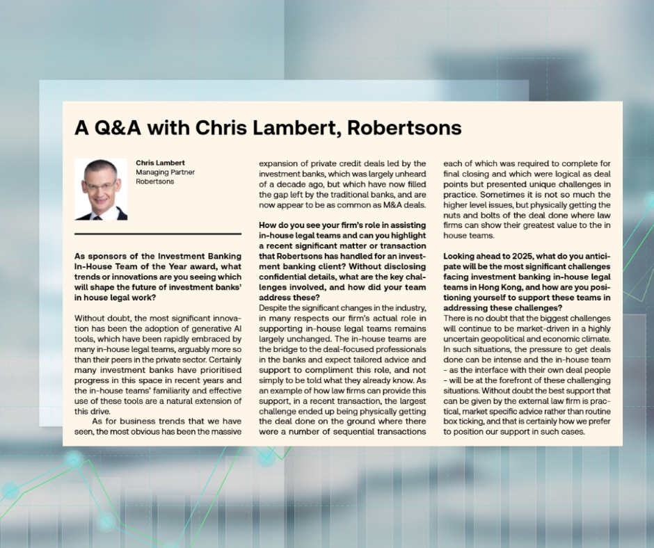 林啟思律師在《亞洲法律雜誌》中分享其對投資銀行法務工作發展的見解